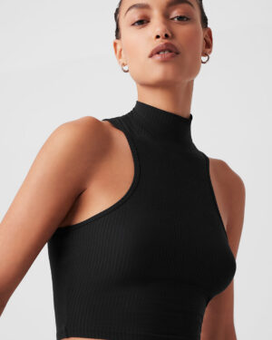 Ribbed Sea Coast Cropped Turtleneck Tank – Black