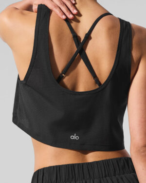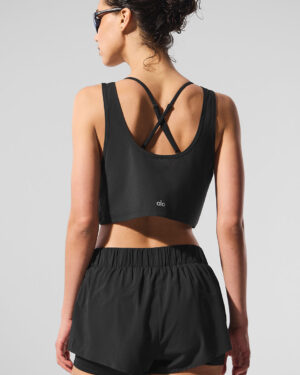Cropped Sport Star Tank – Black