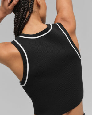 Ribbed Sweater Knit Highline Cropped Tank – Black/White