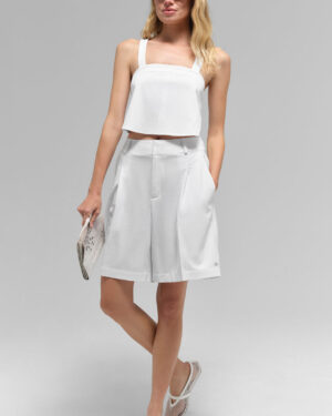 Tailored meets off-duty. With its square neckline, clean lines, and a relaxed silhouette with just the right amount of structure, the Dreamscape Cropped Tank is the perfect choice for dressing up or down. Adjustable button straps make it easy to customize your fit. Pair it with the matching shorts or trousers for a clean, elevated look.