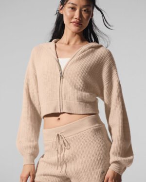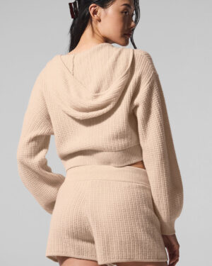Cashmere Plush Waffle Full Zip Hoodie – Macadamia Blush