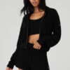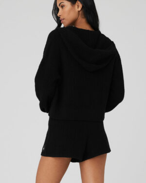 Cashmere Plush Waffle Full Zip Hoodie – Black