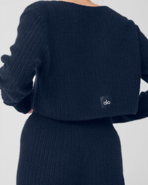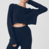 Cashmere Plush Waffle Cropped Long Sleeve – Navy