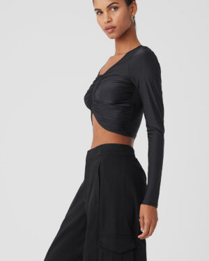 There??s something so pretty about this top. Maybe it??s the thin, slinky fabric with subtle sheen. Or the gathered front with hook-and-eye closures (try undoing a few at the top or bottom, depending on the outfit). Or the feminine fit, complete with a V-neck and a V-shaped hem. Wear it for weekend brunches, evenings out, or any time you want to level up an everyday look.