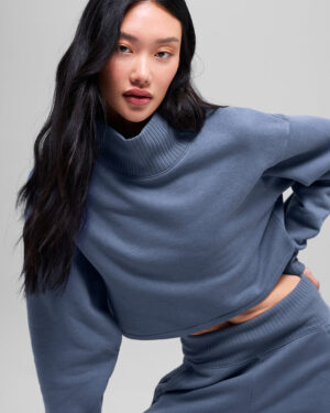 Elevate your post-workout look with the Cropped Serenity Coverup. With its ribbed mock neck and oversized, boxy silhouette, this style is the perfect piece that works for every recovery moment. Pair it with the Serenity Sweatpant for a chic outfit.