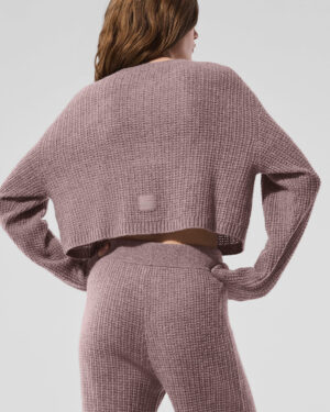 Cashmere Plush Waffle Cardigan – Mushroom Heather