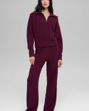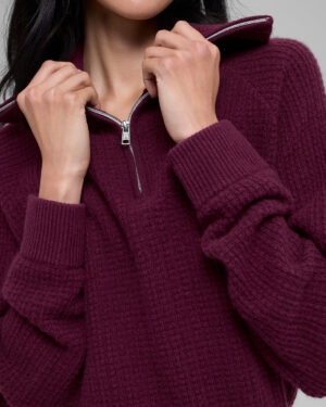 Cashmere Plush Waffle 1/4 Zip Pullover – Burgundy
