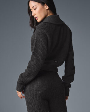 Cashmere Plush Waffle 1/4 Zip Pullover – Dark Heather Grey