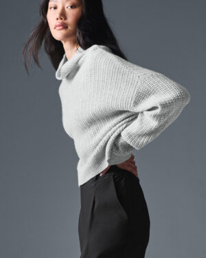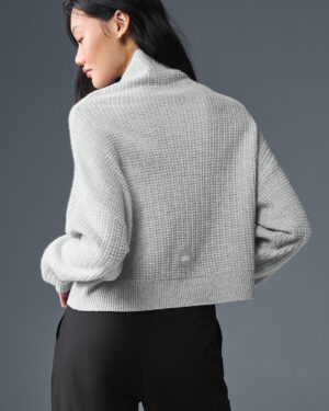 Cashmere Plush Waffle Turtleneck Pullover – Athletic Heather Grey