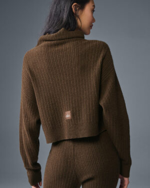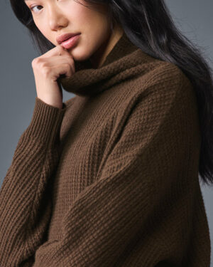 Cashmere Plush Waffle Turtleneck Pullover – Espresso