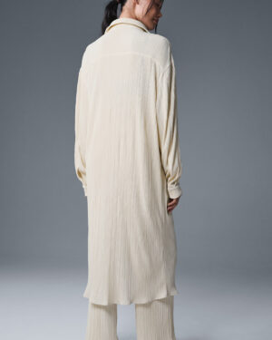 Micro Plisse Shirt Dress – Oat Milk