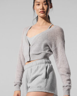 Sheer Cashmere Cropped Cardigan – Athletic Heather Grey