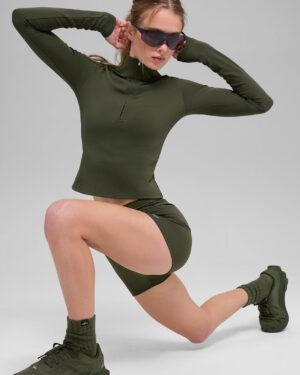 ALO Softsculpt Precision 1/4 Zip Long Sleeve – Green Olive