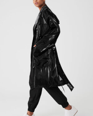 Cover up in chrome. The Metallic Break Line Trench is a street-ready statement piece with an oversized hood, a metallic crinkle-woven fabric and a classic 3-button trench coat silhouette featuring two front pockets, flaps and a functional belt.