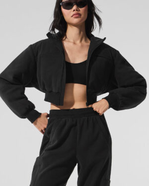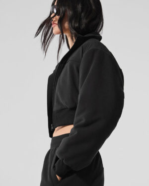 Polar Fleece Cropped Wintry Mix Jacket – Black