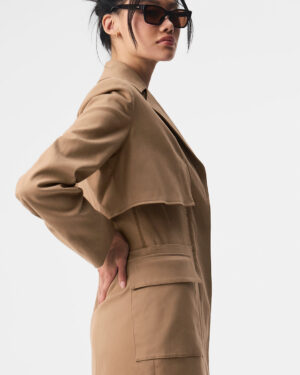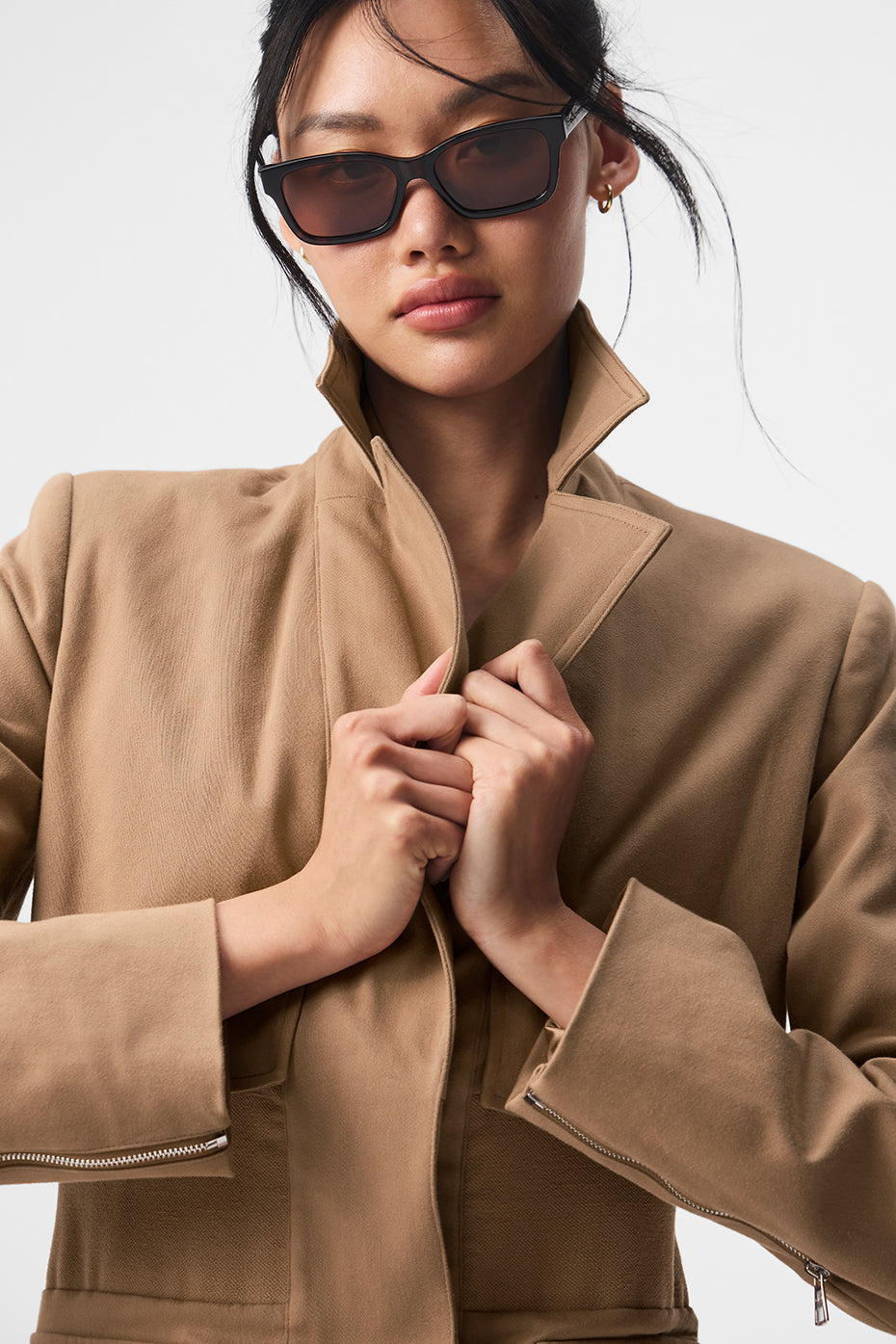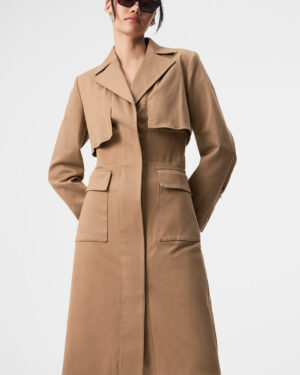 Classic with a cool twist, the Formation is the trench you??ve been searching for. The main silhouette is standard, with notched lapels, storm flaps, flap pockets and a softly structured, slightly stretchy cotton-blend fabric. But the best part? The flattering, contrasting waist panel that highlights the figure and makes this trench feel totally fresh. Leave the front zipper undone for a more laid-back vibe (with a workout set), or zip it up for a more tailored look that works from day to night.