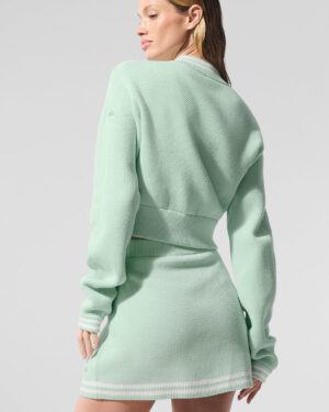 Tennis Club Sweater Knit Full Zip Jacket – Spearmint/White