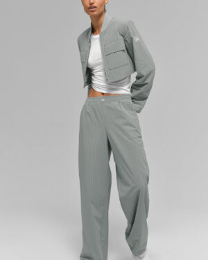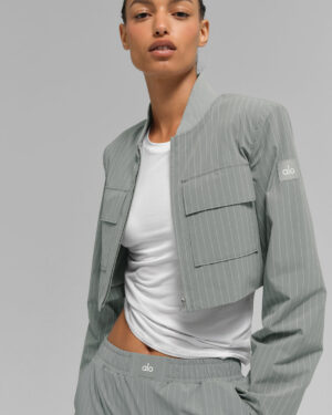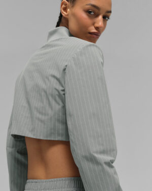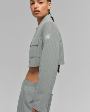 Cropped Pinstripe Main Character Full Zip Jacket – Lunar Grey/White