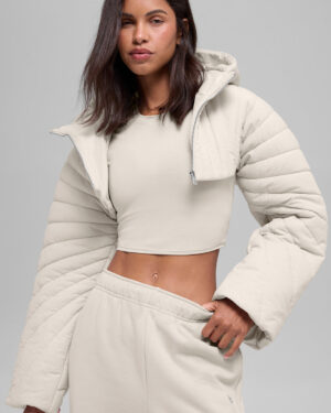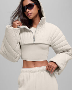 Part jacket, part statement??the Starlight Quilted Puffer Shrug redefines outerwear. With its cropped silhouette and exaggerated hood, this piece was designed to turn heads, and the light fill makes it perfect for transitional layering. Throw it on over a sports bra post-class or style it with high-waist leggings for a bold, model-off-duty look.