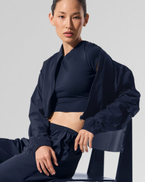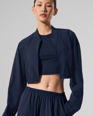 Cropped Breezy Full-Zip Cover Up – Navy