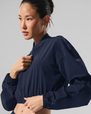 Looking for the perfect jacket for all your between-season looks? The Cropped Breezy Full-Zip is it. This waist-grazing silhouette is made of a lightweight, stretchy material that??s perfect for those days when a light layer is all you need.