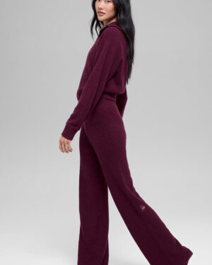 Cashmere High-Waist Plush Waffle Pant – Burgundy