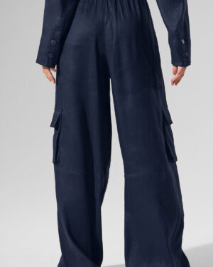 Linen Getaway Cargo Wide Leg Pant – Navy