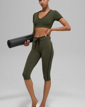 Airbrush High-Waist Race Pace Capri – Green Olive/Black