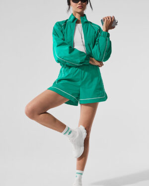 Sporty chic is back. The Motivate Track Short is a longer length style with contrast piping and zippered pockets. Its made from a swishy, performance-like fabric that adds to the sporty cool vibe of your look. Pair it with the Motivate Track Jacket for a chic studio-to-street outfit you??ll be wearing for seasons on end.