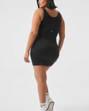 A cute solve for the get-ready-quick dilemma, this dress is made from a soft, smoothing fabric with a body-contouring ribbed panel through the torso. It has a wide scoop-back, a shelf bra for support, and a mini-length hem. And as for the figure-hugging fit, it??s just as good on its own as it is under a blazer, jacket, or button-down.