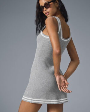 Tennis Club Sweater Knit Dress – Athletic Heather Grey/White