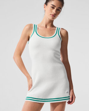 Tennis Club Sweater Knit Dress – White/Spruce Green