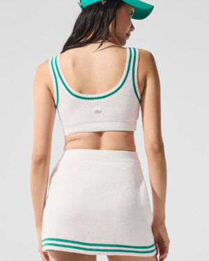 Tennis Club Sweater Knit Bra – White/Spruce Green
