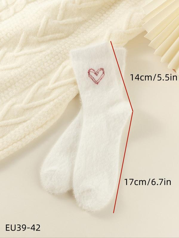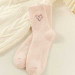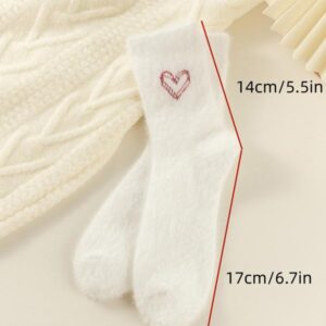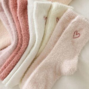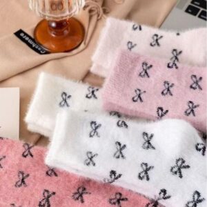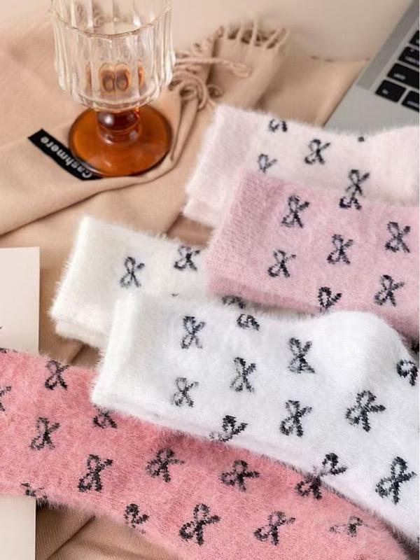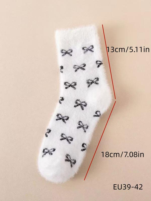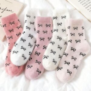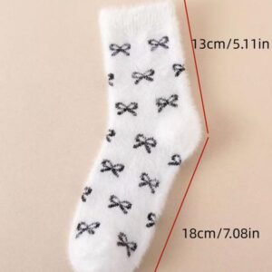 Women’s Winter Socks Set, 5 Pairs Faux Fur Butterfly Knot Design, Cute Sweet Mid-Calf Sleepwear Warm Thickened Socks for Women